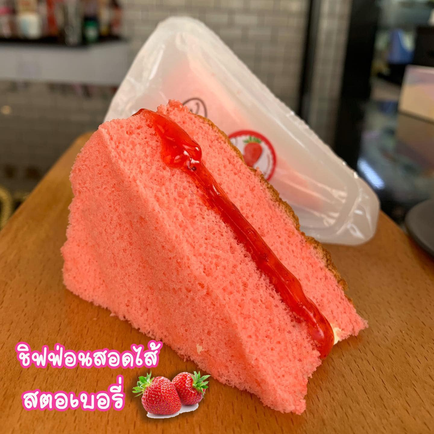 ชิฟฟ่อนเค้กสอดไส้สตรอเบอรี่ 6 ชิ้น (ไม่แช่เย็น) อายุสินค้า 20 วัน