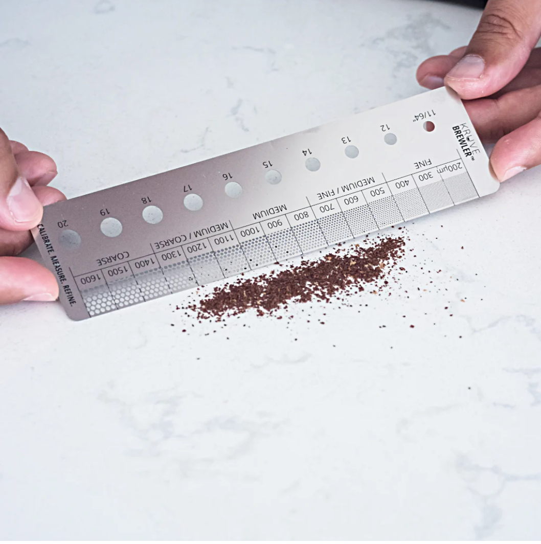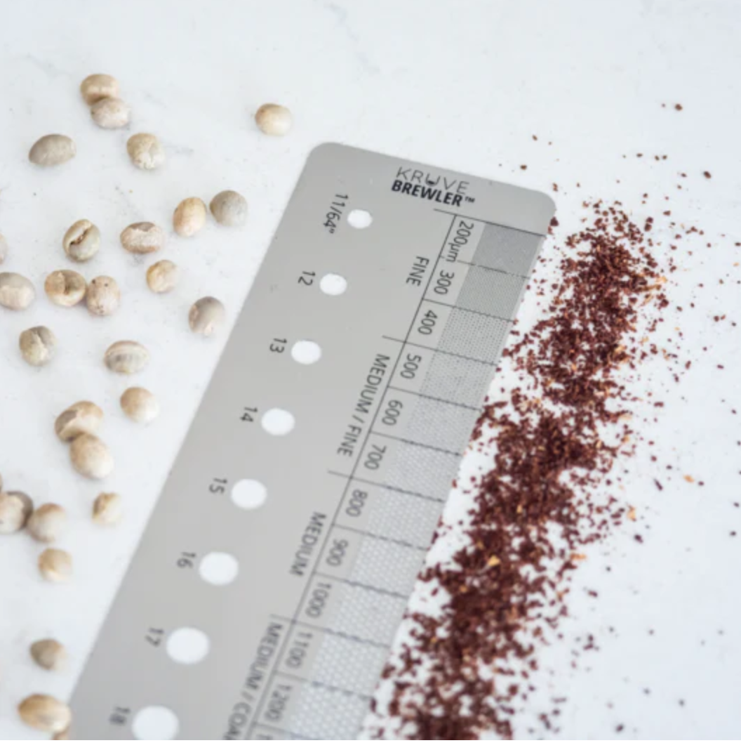 Designed specifically for coffee lovers, the BREWLER is a handy stainless steel measuring tool that lets you quickly reference the size of green beans and coffee grind. The BREWLER finally puts a measurable number next to Fine, Medium, and Coarse. No more guessing or references to sea salt. The BREWLER also includes a metric ruler up to 16cm and a quick conversion table for common brewing related conversions.